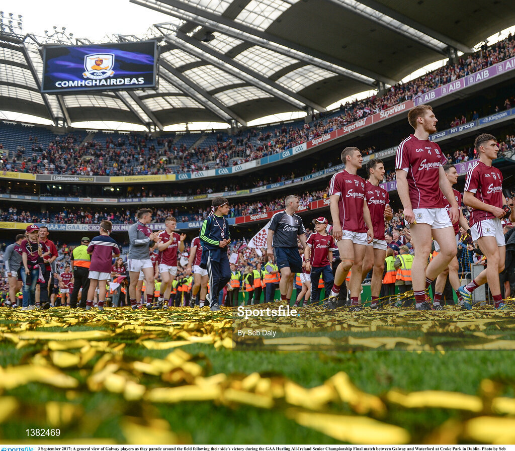 3 September 2017; A general view of Galway players as they parade around the field following their side's victory during the GAA Hurling All-Ireland Senior Championship Final match between Galway and Waterford at Croke Park in Dublin. Photo by Seb Daly/Sportsfile