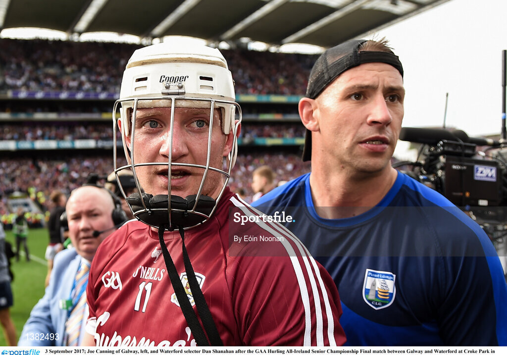 3 September 2017; Joe Canning of Galway, left, and Waterford selector Dan Shanahan after the GAA Hurling All-Ireland Senior Championship Final match between Galway and Waterford at Croke Park in Dublin. Photo by Eóin Noonan/Sportsfile
