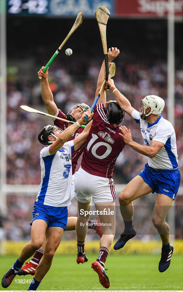 3 September 2017; Niall Burke and Joseph Cooney of Galway, 10, in action against Darragh Fives, left, and Shane Fives of Waterford during the GAA Hurling All-Ireland Senior Championship Final match between Galway and Waterford at Croke Park in Dublin. Photo by Ray McManus/Sportsfile