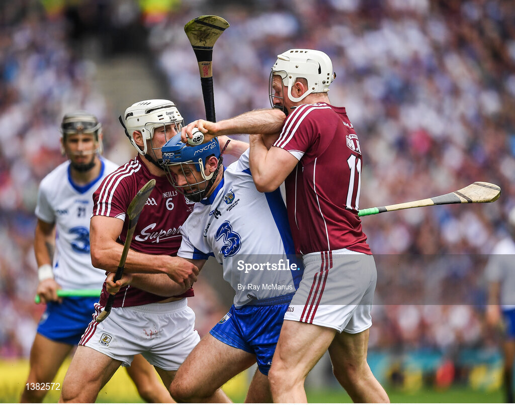 3 September 2017; Michael Walsh of Waterford in action against Joe Canning, 11, and Gearóid McInerney of Galway during the GAA Hurling All-Ireland Senior Championship Final match between Galway and Waterford at Croke Park in Dublin. Photo by Ray McManus/Sportsfile