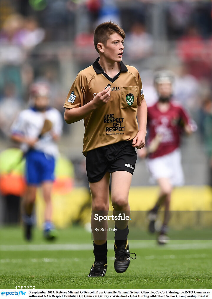 3 September 2017; Referee Michael O'Driscoll, from Glenville National School, Glenville, Co Cork, during the INTO Cumann na mBunscol GAA Respect Exhibition Go Games at Galway v Waterford - GAA Hurling All-Ireland Senior Championship Final at Croke Park in Dublin. Photo by Seb Daly/Sportsfile