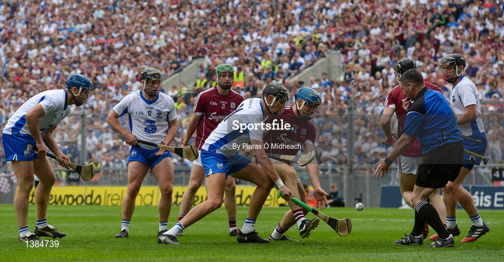 3 September 2017; Referee Fergal Horgan throws the ball in between Maurice Shanahan of Waterford and Conor Cooney of Galway during the GAA Hurling All-Ireland Senior Championship Final match between Galway and Waterford at Croke Park in Dublin. Photo by Piaras Ó Mídheach/Sportsfile