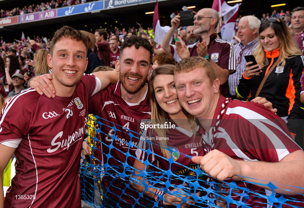 3 September 2017; Niall Burke of Galway celebrates with supporters after the GAA Hurling All-Ireland Senior Championship Final match between Galway and Waterford at Croke Park in Dublin. Photo by Sam Barnes/Sportsfile