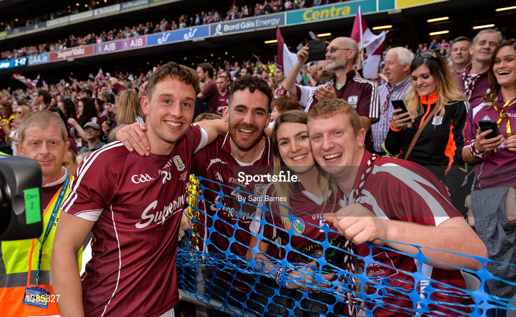 3 September 2017; Niall Burke of Galway celebrates with supporters after the GAA Hurling All-Ireland Senior Championship Final match between Galway and Waterford at Croke Park in Dublin. Photo by Sam Barnes/Sportsfile
