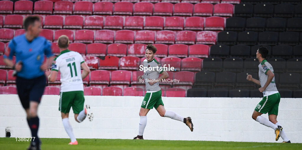 9 September 2017; Kieran Sadlier of Cork City, centre, celebrates after scoring his side's first goal during the Irish Daily Mail FAI Cup Quarter-Final match between Longford Town and Cork City at The City Calling Stadium in Longford. Photo by Stephen McCarthy/Sportsfile