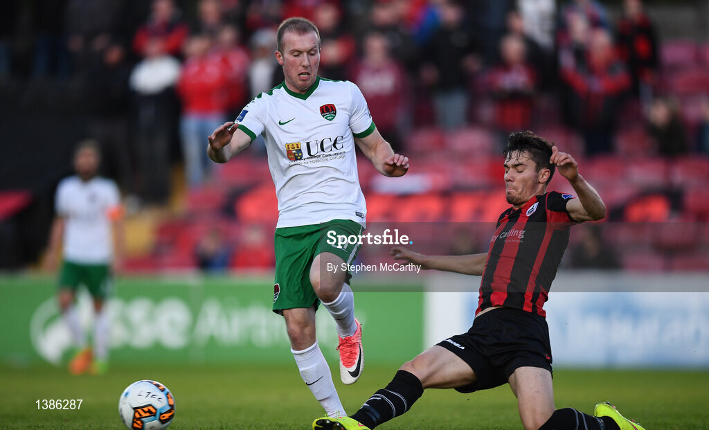 9 September 2017; Stephen Dooley of Cork City in action against Tristan Noack-Hofmann of Longford Town during the Irish Daily Mail FAI Cup Quarter-Final match between Longford Town and Cork City at The City Calling Stadium in Longford. Photo by Stephen McCarthy/Sportsfile