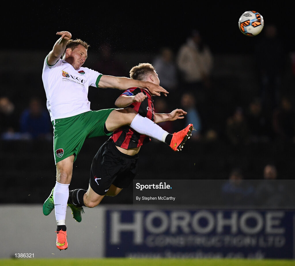 9 September 2017; Achille Campion of Cork City in action against Daniel O'Reilly of Longford Town during the Irish Daily Mail FAI Cup Quarter-Final match between Longford Town and Cork City at The City Calling Stadium in Longford. Photo by Stephen McCarthy/Sportsfile