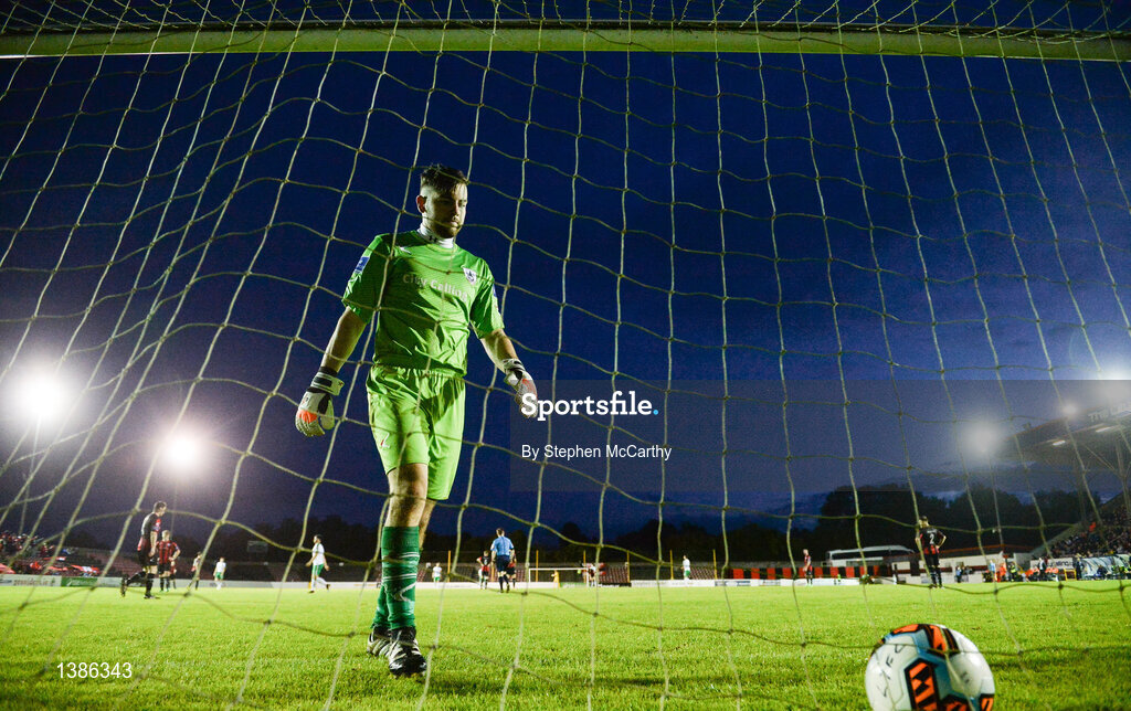 9 September 2017; Longford Town goalkeeper Jack Brady after conceding a fourth goal during the Irish Daily Mail FAI Cup Quarter-Final match between Longford Town and Cork City at The City Calling Stadium in Longford. Photo by Stephen McCarthy/Sportsfile