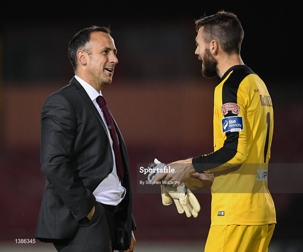 9 September 2017; Longford Town manager Neale Fenn with Mark McNulty of Cork City following the Irish Daily Mail FAI Cup Quarter-Final match between Longford Town and Cork City at The City Calling Stadium in Longford. Photo by Stephen McCarthy/Sportsfile