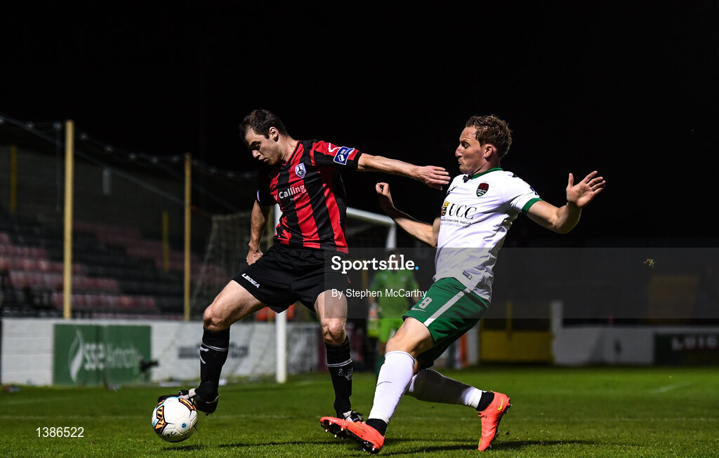9 September 2017; Noel Haverty of Longford Town in action against Achille Campion of Cork City during the Irish Daily Mail FAI Cup Quarter-Final match between Longford Town and Cork City at The City Calling Stadium in Longford. Photo by Stephen McCarthy/Sportsfile