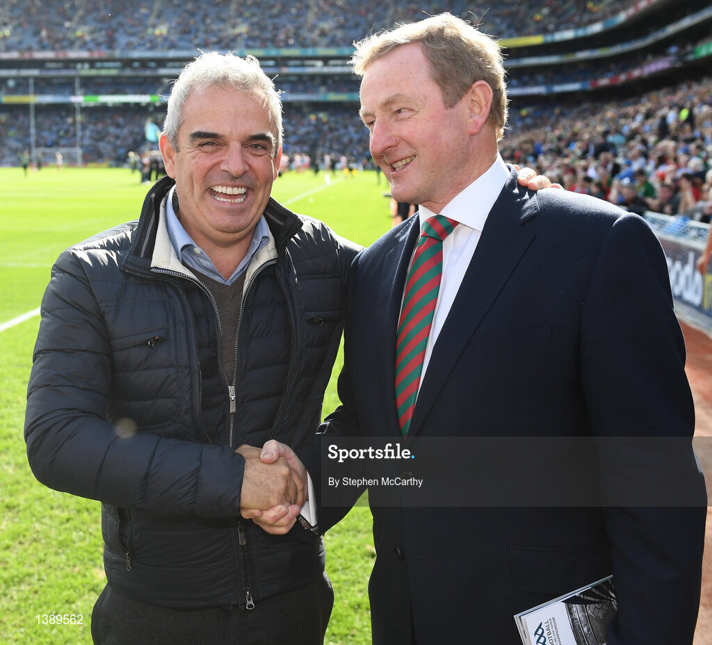 17 September 2017; Golfer Paul McGinley and former Taoiseach Enda Kenny prior to the GAA Football All-Ireland Senior Championship Final match between Dublin and Mayo at Croke Park in Dublin. Photo by Stephen McCarthy/Sportsfile