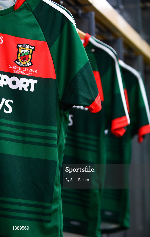17 September 2017; Mayo jerseys hang in the dressing room prior to the GAA Football All-Ireland Senior Championship Final match between Dublin and Mayo at Croke Park in Dublin. Photo by Sam Barnes/Sportsfile
