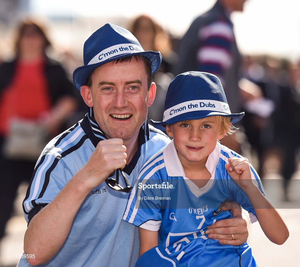17 September 2017; Dublin supporters Peter Walsh, and his son Conor, aged 7, from Stillorgan, Co Dublin, ahead of the GAA Football All-Ireland Senior Championship Final match between Dublin and Mayo at Croke Park in Dublin. Photo by Daire Brennan/Sportsfile
