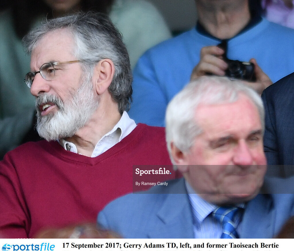 17 September 2017; Gerry Adams TD, left, and former Taoiseach Bertie Ahern prior to the GAA Football All-Ireland Senior Championship Final match between Dublin and Mayo at Croke Park in Dublin.
