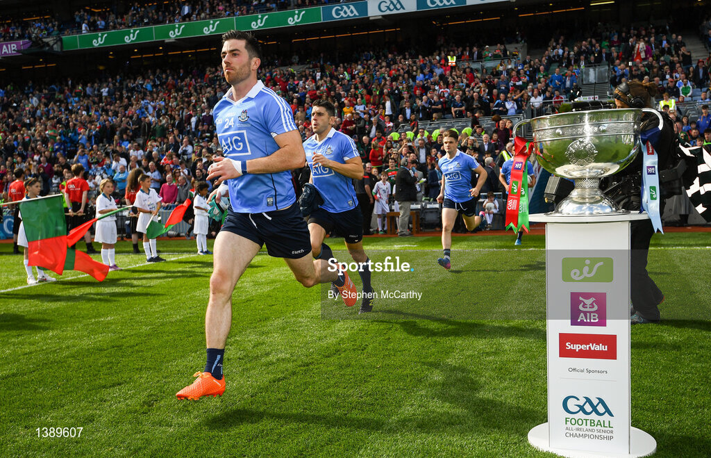 17 September 2017; Michael Darragh Macauley of Dublin runs out prior to the GAA Football All-Ireland Senior Championship Final match between Dublin and Mayo at Croke Park in Dublin. Photo by Stephen McCarthy/Sportsfile