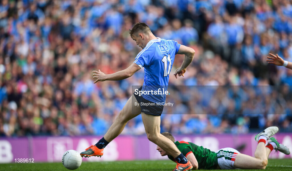 17 September 2017; Con O'Callaghan of Dublin scores his side's first goal in the second minute during the GAA Football All-Ireland Senior Championship Final match between Dublin and Mayo at Croke Park in Dublin. Photo by Stephen McCarthy/Sportsfile