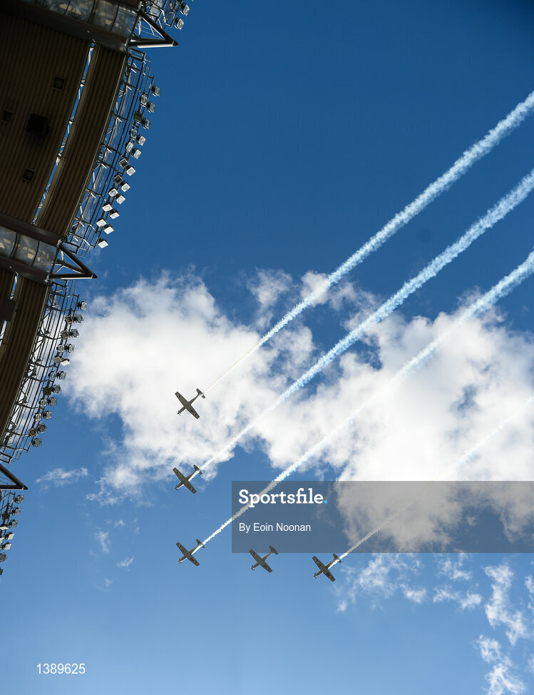 17 September 2017; A general view of the Irish Airforce making their way over the stadium prior to the GAA Football All-Ireland Senior Championship Final match between Dublin and Mayo at Croke Park in Dublin. Photo by Eoin Noonan/Sportsfile