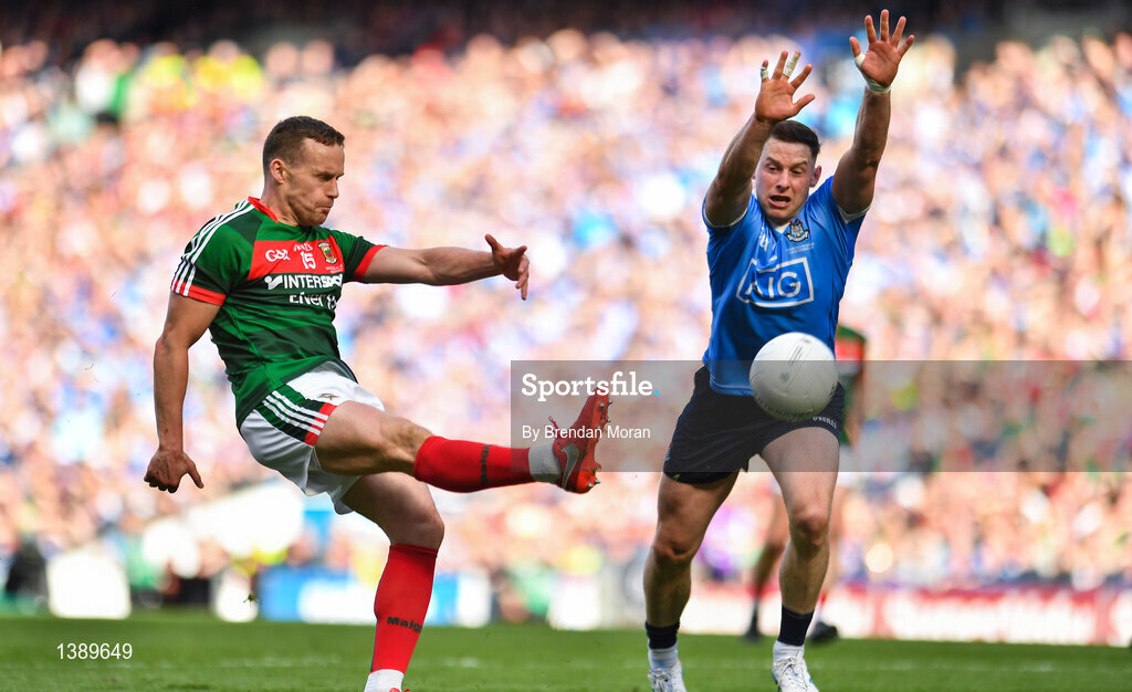 17 September 2017; Andy Moran of Mayo in action against Philip McMahon of Dublin during the GAA Football All-Ireland Senior Championship Final match between Dublin and Mayo at Croke Park in Dublin. Photo by Brendan Moran/Sportsfile
