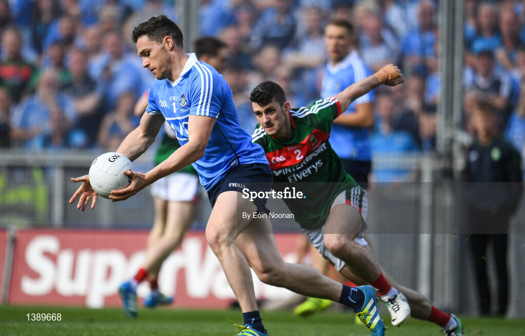 17 September 2017; Paddy Andrews of Dublin in action against Brendan Harrison of Mayo during the GAA Football All-Ireland Senior Championship Final match between Dublin and Mayo at Croke Park in Dublin. Photo by Eóin Noonan/Sportsfile