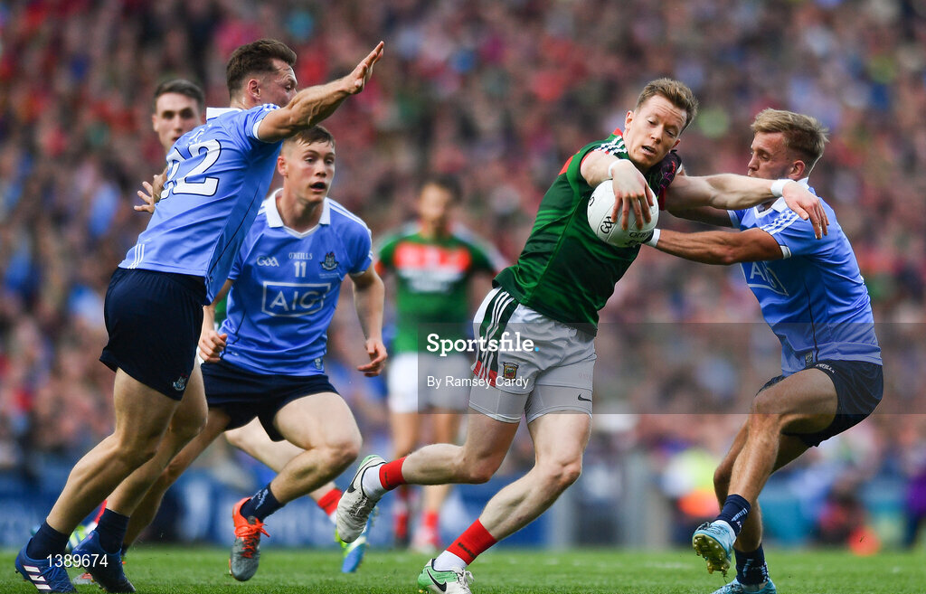 17 September 2017; Donal Vaughan of Mayo is tackled by Jonny Cooper of Dublin during the GAA Football All-Ireland Senior Championship Final match between Dublin and Mayo at Croke Park in Dublin. Photo by Ramsey Cardy/Sportsfile