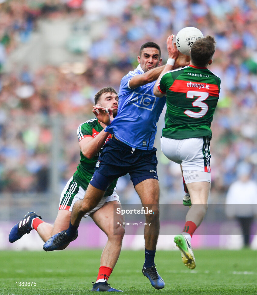 17 September 2017; James McCarthy of Dublin in action against Aidan O'Shea, left, and Donal Vaughan of Mayo during the GAA Football All-Ireland Senior Championship Final match between Dublin and Mayo at Croke Park in Dublin. Photo by Ramsey Cardy/Sportsfile
