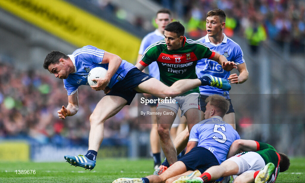 17 September 2017; Paddy Andrews of Dublin in action against Jason Doherty of Mayo during the GAA Football All-Ireland Senior Championship Final match between Dublin and Mayo at Croke Park in Dublin. Photo by Ramsey Cardy/Sportsfile