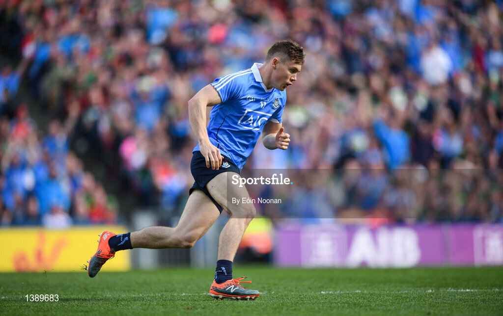 17 September 2017; Con O'Callaghan of Dublin celebrates after scoring his side's first goal during the GAA Football All-Ireland Senior Championship Final match between Dublin and Mayo at Croke Park in Dublin. Photo by Eóin Noonan/Sportsfile