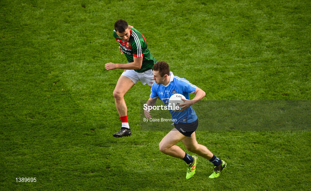 17 September 2017; Jack McCaffrey of Dublin in action against Jason Doherty of Mayo during the GAA Football All-Ireland Senior Championship Final match between Dublin and Mayo at Croke Park in Dublin. Photo by Daire Brennan/Sportsfile