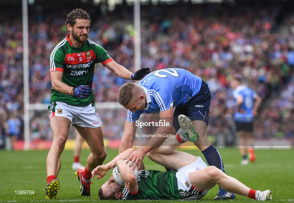 17 September 2017; Eoghan O'Gara of Dublin and Colm Boyle of Mayo during the GAA Football All-Ireland Senior Championship Final match between Dublin and Mayo at Croke Park in Dublin. Photo by Stephen McCarthy/Sportsfile