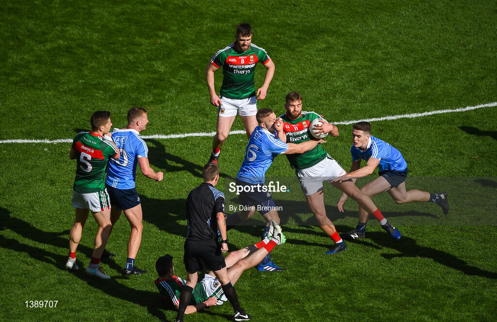 17 September 2017; Aidan O'Shea of Dublin in action against Eoghan O'Gara of Mayo during the GAA Football All-Ireland Senior Championship Final match between Dublin and Mayo at Croke Park in Dublin. Photo by Daire Brennan/Sportsfile