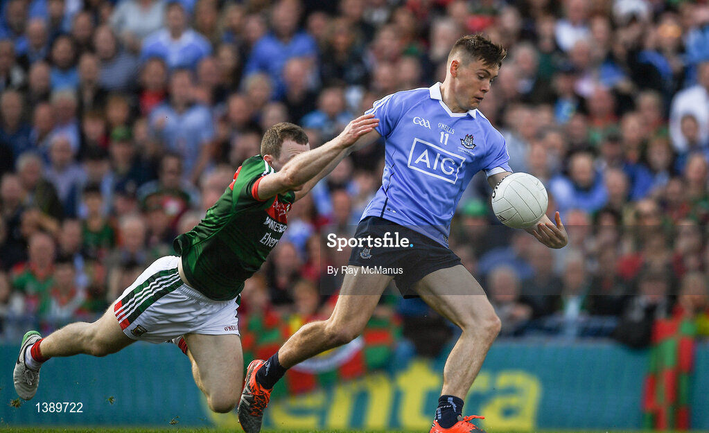 17 September 2017; Con O'Callaghan of Dublin evades the tackle of Colm Boyle of Mayo on his way to scoring his side's first goal during the GAA Football All-Ireland Senior Championship Final match between Dublin and Mayo at Croke Park in Dublin. Photo by Ray McManus/Sportsfile