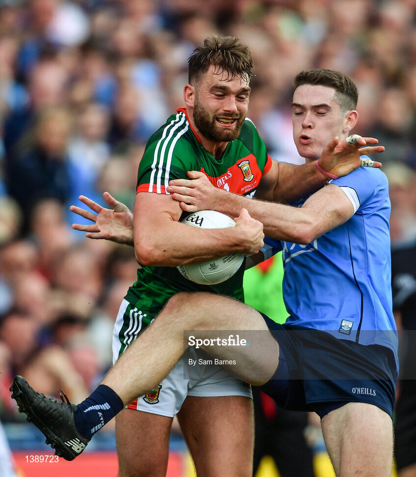 17 September 2017; Aidan O'Shea of Mayo in action against Brian Fenton of Dublin during the GAA Football All-Ireland Senior Championship Final match between Dublin and Mayo at Croke Park in Dublin. Photo by Sam Barnes/Sportsfile