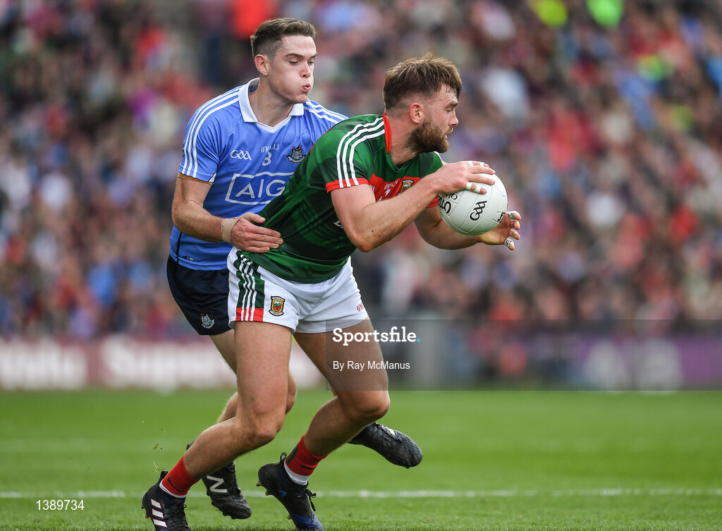 17 September 2017; Aidan O'Shea of Mayo in action against Brian Fenton of Dublin during the GAA Football All-Ireland Senior Championship Final match between Dublin and Mayo at Croke Park in Dublin. Photo by Ray McManus/Sportsfile