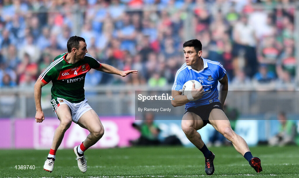 17 September 2017; Diarmuid Connolly of Dublin in action against Keith Higgins of Mayo during the GAA Football All-Ireland Senior Championship Final match between Dublin and Mayo at Croke Park in Dublin. Photo by Ramsey Cardy/Sportsfile