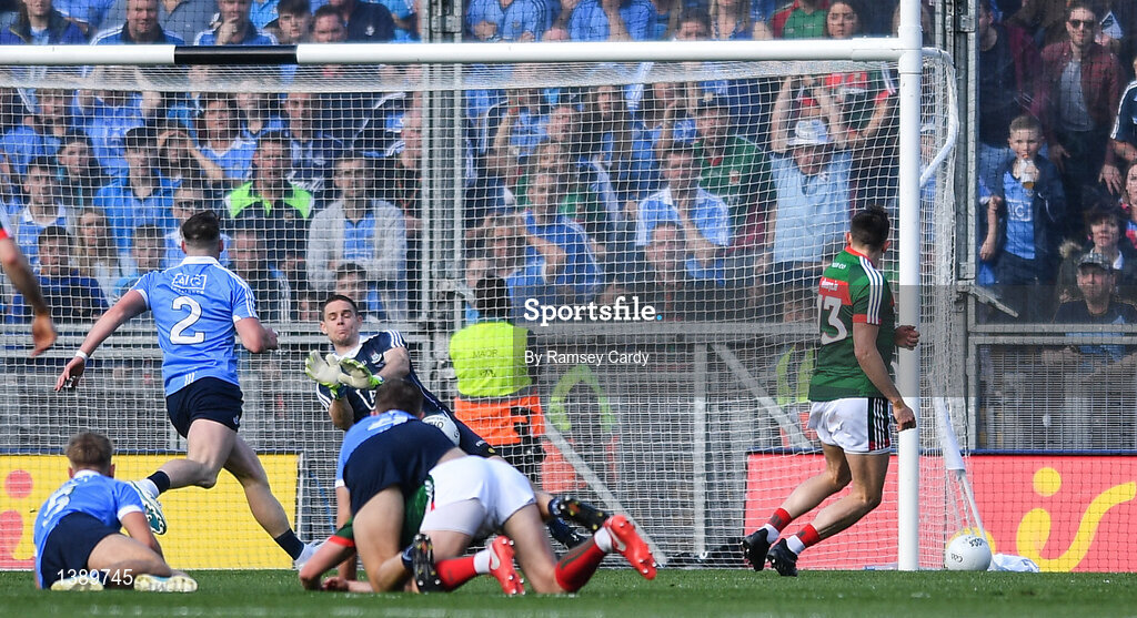 17 September 2017; Stephen Cluxton of Dublin saves a shot by Jason Doherty of Mayo during the GAA Football All-Ireland Senior Championship Final match between Dublin and Mayo at Croke Park in Dublin. Photo by Ramsey Cardy/Sportsfile