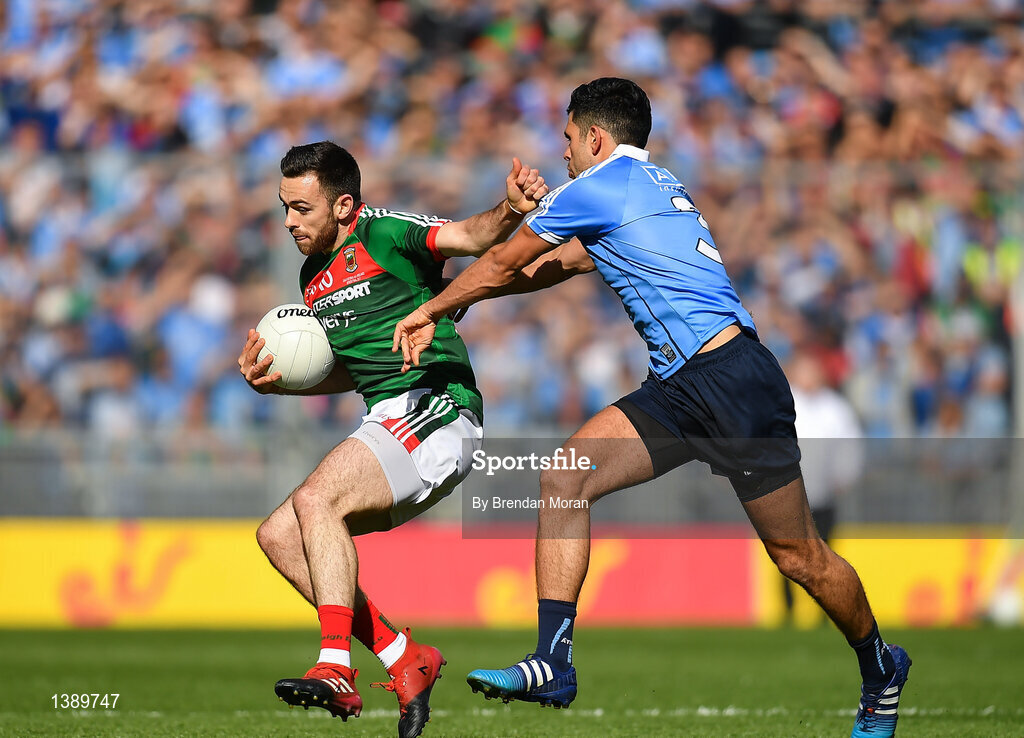 17 September 2017; Kevin McLoughlin of Mayo in action against Philip McMahon of Dublin during the GAA Football All-Ireland Senior Championship Final match between Dublin and Mayo at Croke Park in Dublin. Photo by Brendan Moran/Sportsfile