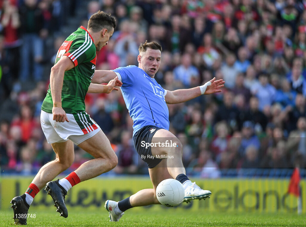 17 September 2017; Philip McMahon of Dublin blocks a shot from Jason Doherty of Mayo in the 43rd minute during the GAA Football All-Ireland Senior Championship Final match between Dublin and Mayo at Croke Park in Dublin. Photo by Ray McManus/Sportsfile