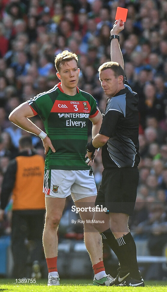17 September 2017; Donal Vaughan of Mayo receives a straight red card during the GAA Football All-Ireland Senior Championship Final match between Dublin and Mayo at Croke Park in Dublin. Photo by Ray McManus/Sportsfile