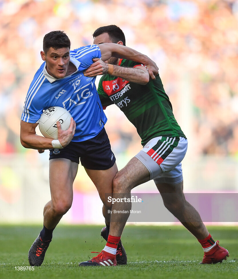 17 September 2017; Stephen Coen of Mayo in action against Ciarán Kilkenny of Dublin during the GAA Football All-Ireland Senior Championship Final match between Dublin and Mayo at Croke Park in Dublin. Photo by Brendan Moran/Sportsfile