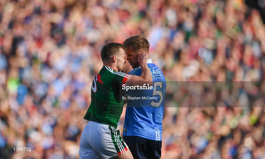 17 September 2017; Andy Moran of Mayo tussles with Jonny Cooper of Dublin during the GAA Football All-Ireland Senior Championship Final match between Dublin and Mayo at Croke Park in Dublin. Photo by Stephen McCarthy/Sportsfile