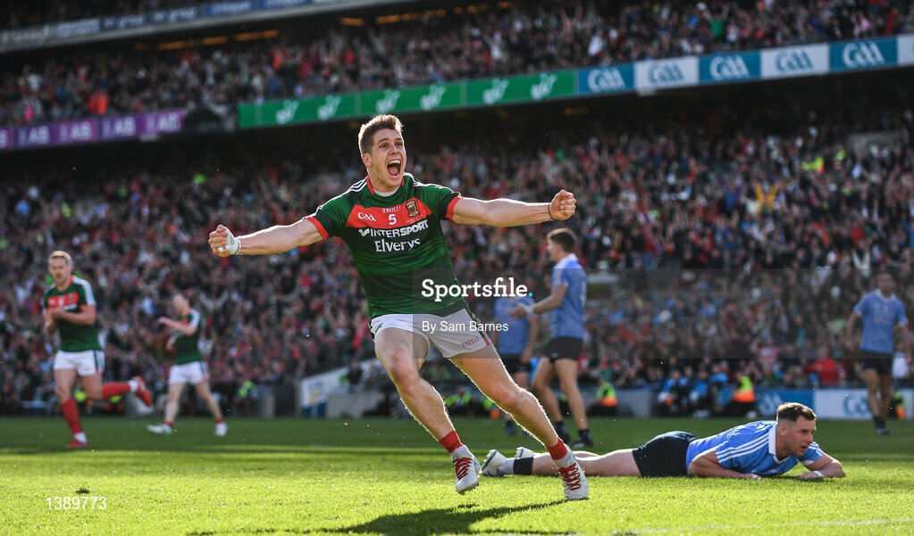 17 September 2017; Lee Keegan of Mayo celebrates after scoring his side's first goal in the 54th minute during the GAA Football All-Ireland Senior Championship Final match between Dublin and Mayo at Croke Park in Dublin. Photo by Sam Barnes/Sportsfile