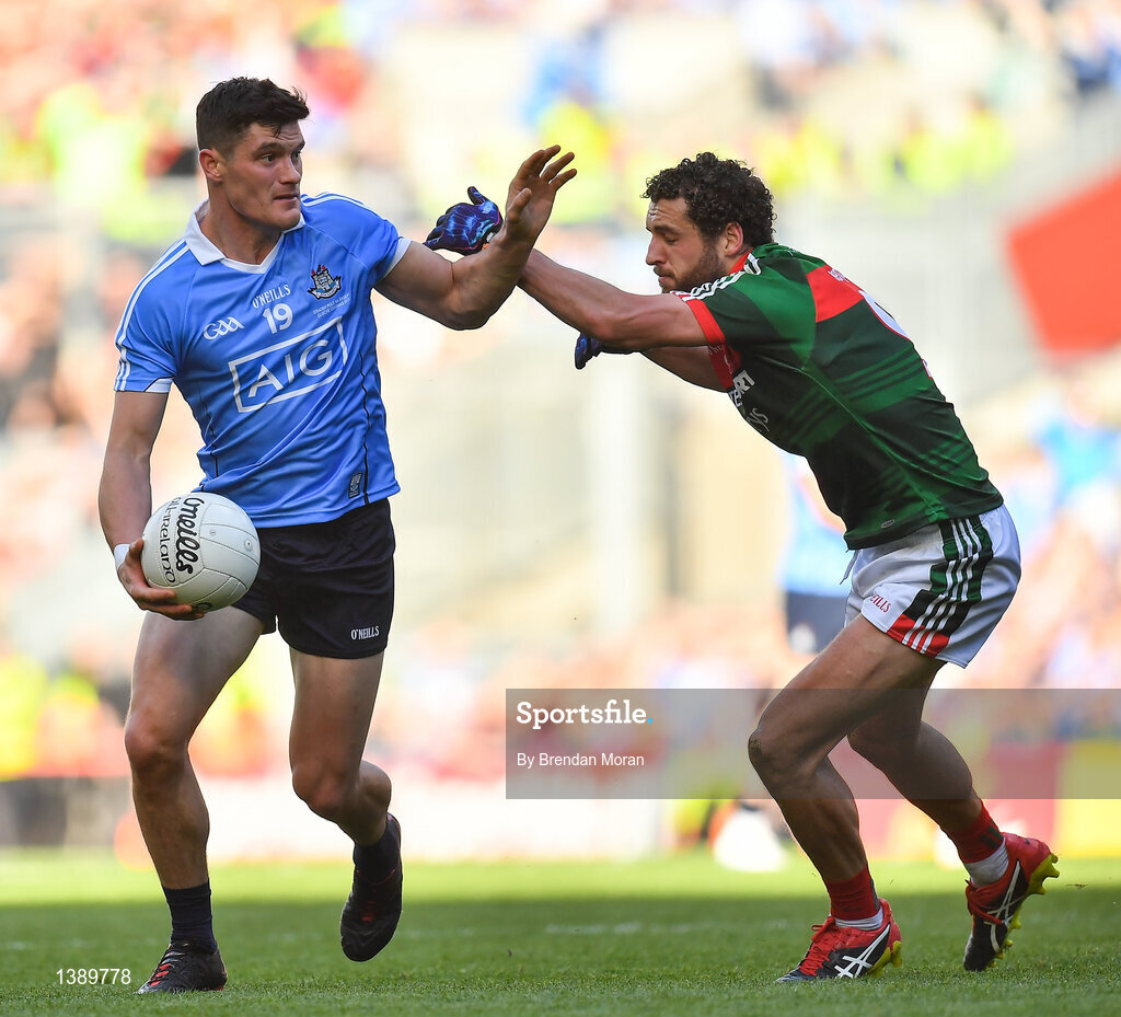 17 September 2017; Diarmuid Connolly of Dublin in action against Tom Parsons of Mayo during the GAA Football All-Ireland Senior Championship Final match between Dublin and Mayo at Croke Park in Dublin. Photo by Brendan Moran/Sportsfile