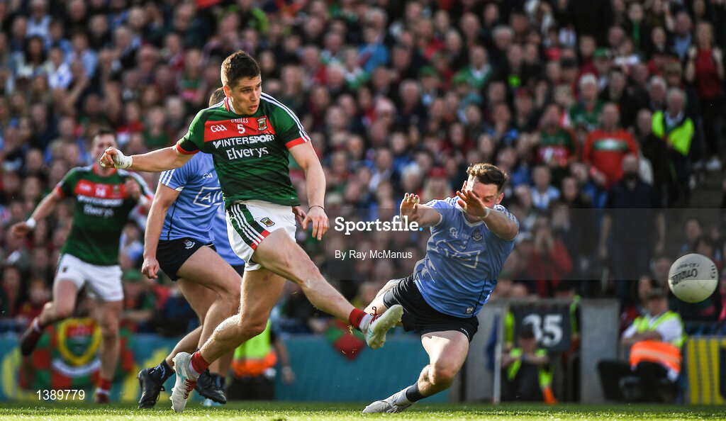 17 September 2017; Lee Keegan of Mayo shoots to score his side's first goal in the 54th minute during the GAA Football All-Ireland Senior Championship Final match between Dublin and Mayo at Croke Park in Dublin. Photo by Ray McManus/Sportsfile