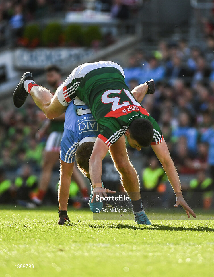 17 September 2017; Jonny Cooper of Dublin in action against Jason Doherty of Mayo during the GAA Football All-Ireland Senior Championship Final match between Dublin and Mayo at Croke Park in Dublin. Photo by Ray McManus/Sportsfile