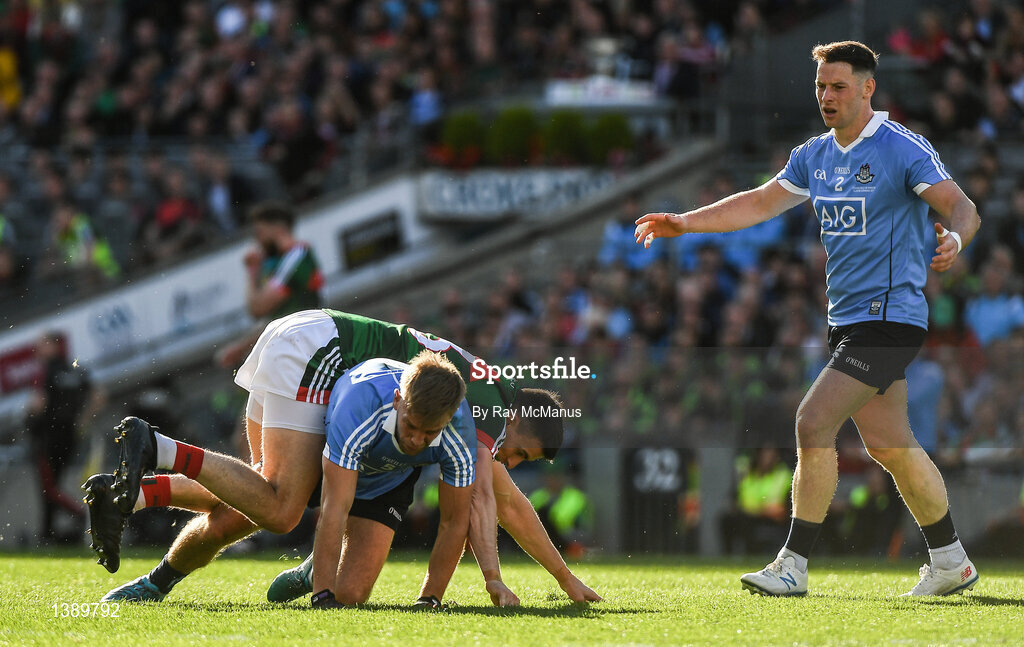 17 September 2017; Jonny Cooper of Dublin in action against Jason Doherty of Mayo during the GAA Football All-Ireland Senior Championship Final match between Dublin and Mayo at Croke Park in Dublin. Photo by Ray McManus/Sportsfile