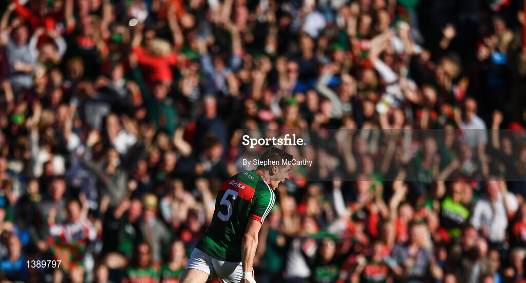 17 September 2017; Lee Keegan of Mayo celebrates after scoring his side's first goal in the 54th minute during the GAA Football All-Ireland Senior Championship Final match between Dublin and Mayo at Croke Park in Dublin. Photo by Stephen McCarthy/Sportsfile