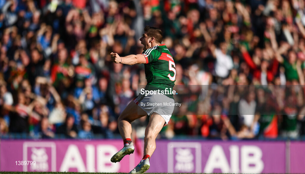 17 September 2017; Lee Keegan of Mayo celebrates after scoring his side's first goal in the 54th minute during the GAA Football All-Ireland Senior Championship Final match between Dublin and Mayo at Croke Park in Dublin. Photo by Stephen McCarthy/Sportsfile