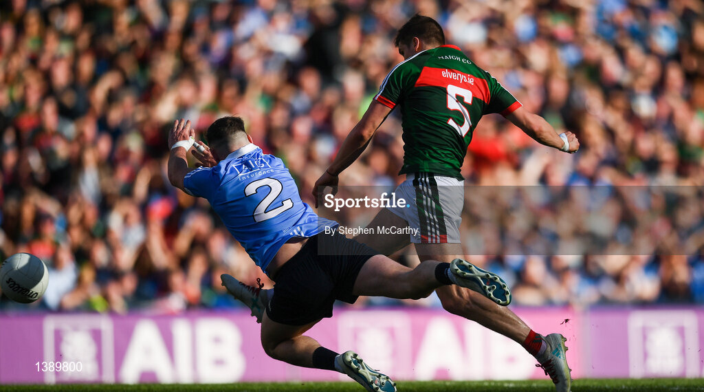 17 September 2017; Lee Keegan of Mayo shoots to score his side's first goal in the 54th minute during the GAA Football All-Ireland Senior Championship Final match between Dublin and Mayo at Croke Park in Dublin. Photo by Stephen McCarthy/Sportsfile