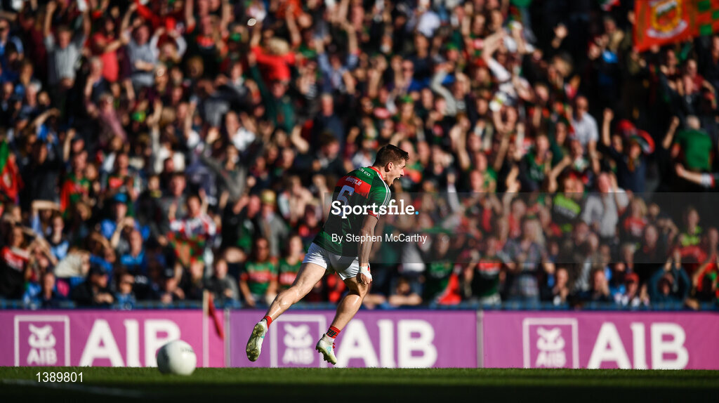 17 September 2017; Lee Keegan of Mayo celebrates after scoring his side's first goal in the 54th minute during the GAA Football All-Ireland Senior Championship Final match between Dublin and Mayo at Croke Park in Dublin. Photo by Stephen McCarthy/Sportsfile