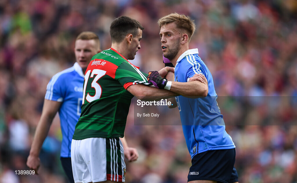 17 September 2017; Jason Doherty of Mayo in action against Jonny Cooper of Dublin during the GAA Football All-Ireland Senior Championship Final match between Dublin and Mayo at Croke Park in Dublin. Photo by Seb Daly/Sportsfile